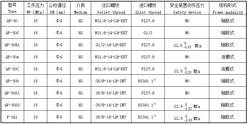 产品型号:QF-30氢气瓶阀